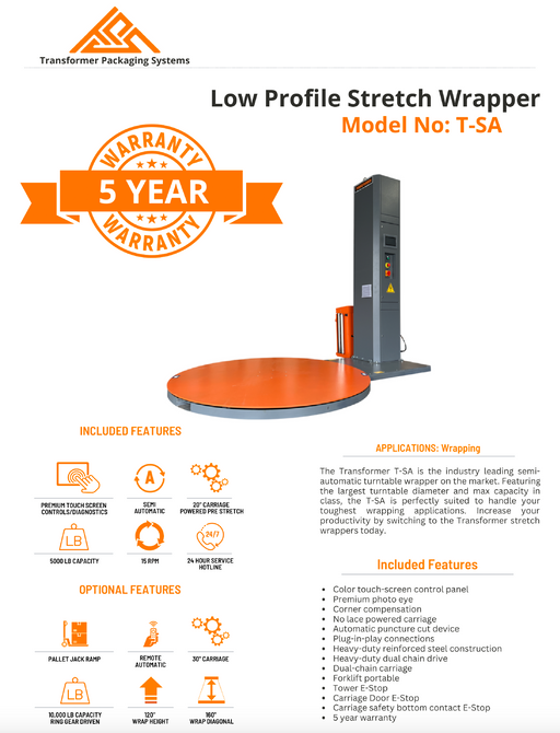 The Transformer TSA is leading in class with all the options. The T-SA features the largest turntable diameter and maximum load capacity in its cl...