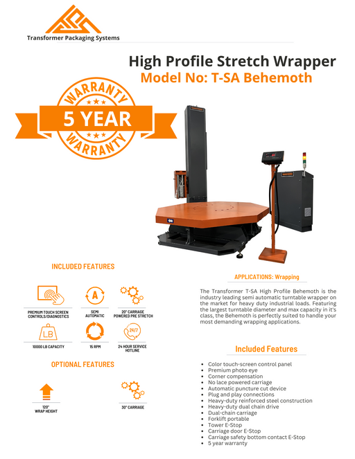 TRANSFORMER BEHEMOTH W/ SCALE - 83" WRAP HEIGHT - 71" TURNTABLE - 20" STRETCH FILM CARRIAGE - 10,000lb WEIGHT CAPACITY